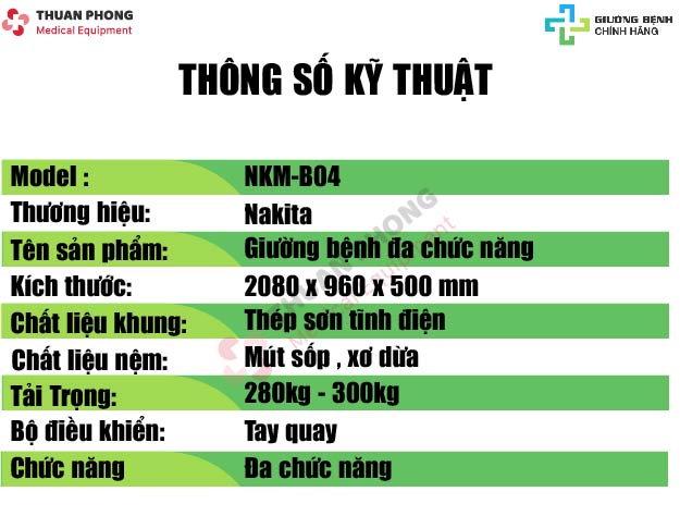 Giường bệnh nhân 4 tay quay Nakita NKM-B04
