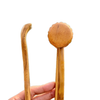 👉 Dụng cụ Cây Gãi & Đập Lưng Đầu Tròn gồm: một đầu có hai bánh gỗ tròn với các đường gân có tác dụng massage trực tiếp vào các huyệt đạo khi tác động trực tiếp bằng lực vuông góc lên các phần cơ thể có nhiều cơ bắp, như dọc theo sống lưng, mông, bắp chân, đùi, bả vai, ngực trên ... giúp tăng tính đàn hồi cho cơ bắp, giúp kích thích máu huyết lưu thông, từ đó làm nóng cơ làm giảm căng thẳng mệt mỏi. Đặc biệt khi tác động trực tiếp vào các điểm có huyệt đạo giúp giải tỏa năng lượng bị "bí tù", từ đó có tác dụng chữa bệnh. Đầu còn lại hình bàn tay giúp gãi ngứa, và có tác dụng thư giãn phần cơ thể đã được đấm bóp massage.