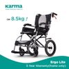 Xe lăn tay nhôm Karma Ergo Lite (KM-2501) chỉ nặng 8.5kg, đây là loại xe lăn nhẹ nhất của Karma dành cho người chăm sóc. Với thiết kế gọn nhẹ, đây là lựa chọn lí tưởng cho những ai cần một chiếc xe nhẹ, đơn giản để di chuyển trong khoảng cách ngắn. Xe còn được trang bị ghế ngồi S-Ergo tiến tiến của Karma.